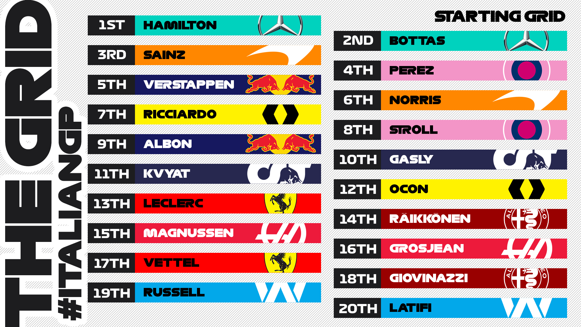 Formula 1 On Twitter Starting Grid How Our Field Will Start Sunday S Race In Monza Italiangp F1